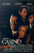 Martin Scorsese effectively revisits his critical and commercial hit Goodfellas (1990), re-teaming with Robert De Niro and Joe Pesci and showering them with glitz. Adapted from Nicholas Pileggi's fact-based book, "Casino: Love and Honor in Las Vegas" (Pileggi's 'Wise Guys' had been the source of Goodfellas and he and Scorsese co-wrote the screenplay for both films), Casino tells in flashback the story of Chicago wise guys, Sam (De Niro) and Nicky (Pesci) and their rise and fall in pre-corporatised Las Vegas.